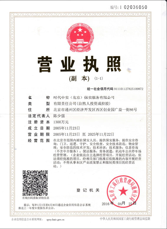 時(shí)代中安(北京)保安服務(wù)有限公司